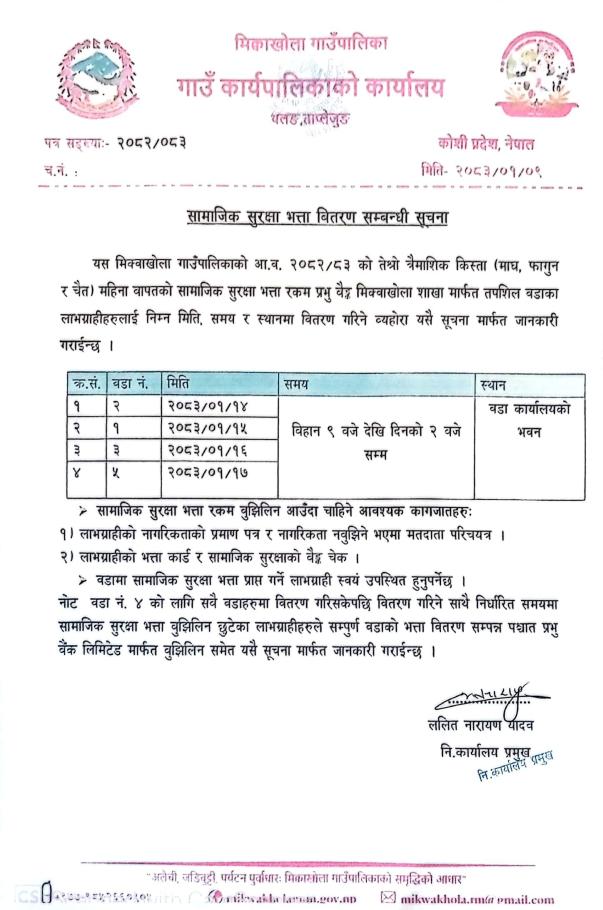 सामाजिक सुरक्षा भत्ता वितरण सम्बन्धी सूचना !!!