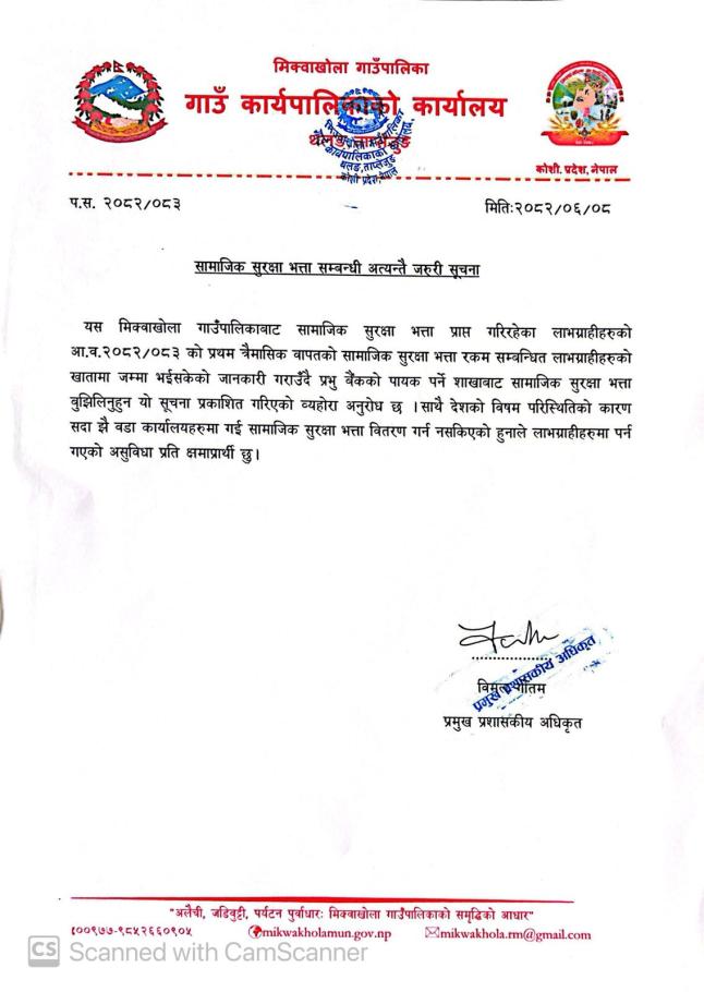 मिक्वाखोला गाउँपालिकाको WEBSITE मा स्वागत छ।