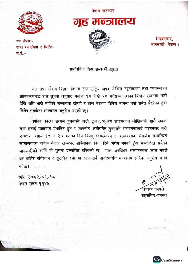 सार्वजनिक बिदा सम्बन्धी सूचना !!!