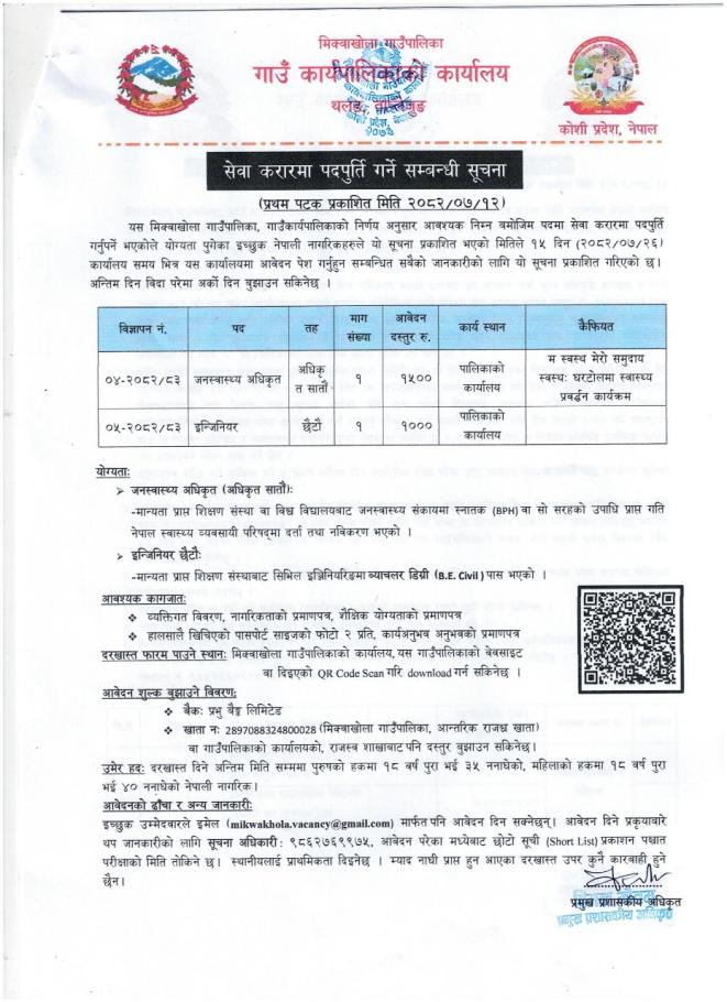 सेवा करारमा पदपुर्ति गर्ने सम्बन्धी सूचना !!!